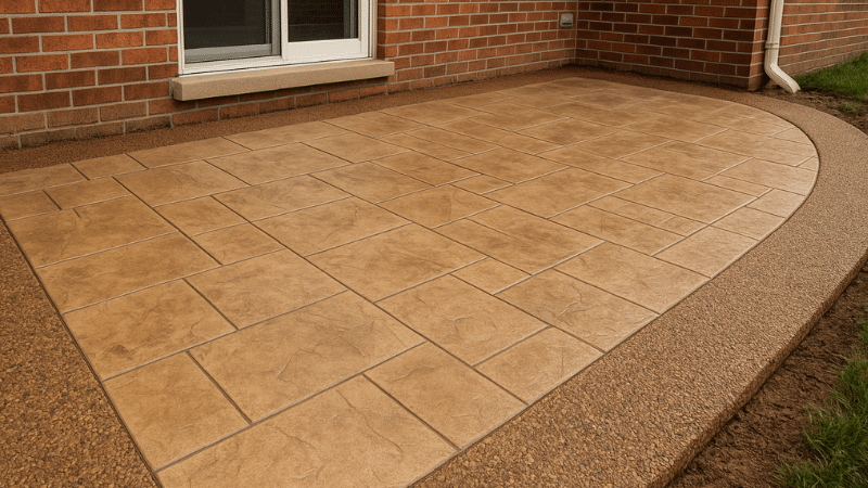 While not a stamped pattern itself, exposed aggregate borders have become the hottest complementary design element in Cincinnati. These decorative edges frame stamped concrete areas with textured, pebbled surfaces that add visual interest and define spaces beautifully.